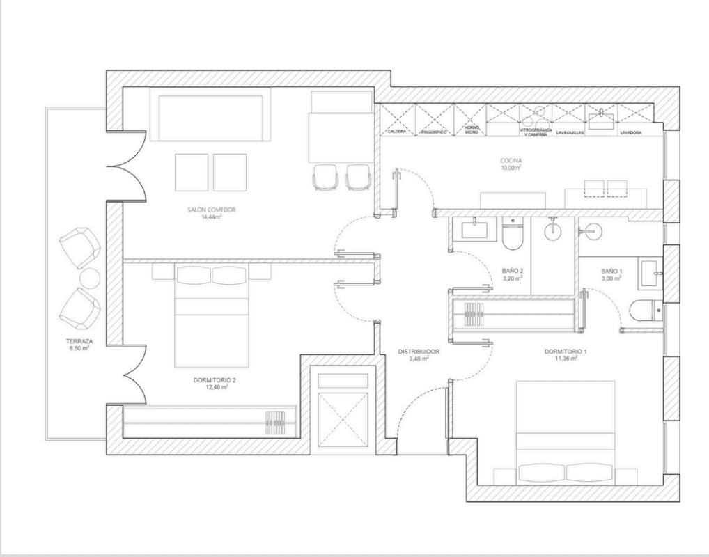 Vivienda reformada de 77 m² situada en la tercera planta de un edificio clásico construido en 1941, en la calle Francisco de Silvela, en pleno Barrio de Salamanca, una de las zonas más cotizadas de Madrid. El piso, completamente renovado, combina el encanto tradicional con un estilo moderno y funcional. Cuenta con dos dormitorios y dos baños completos, además de una luminosa zona de estar con acceso a terraza. La orientación este y su ubicación exterior a un amplio patio de manzana garantizan una excelente luminosidad y tranquilidad. Dispone de calefacción individual y aire acondicionado, así como ascensor en la finca. El edificio, de siete plantas y tres viviendas por planta, mantiene el carácter señorial típico del Barrio de Salamanca. Gastos: Comunidad: 128,86 €/mes IBI: 436,20 €/año Precio: 820.000 €